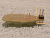 El conjunto D-Pad realiza la conectividad eléctrica con la PCB principal a través del conector resaltado en naranja. Para quitarlo, tira del ensamblaje del D-Pad para alejarlo de la placa de circuito impreso principal